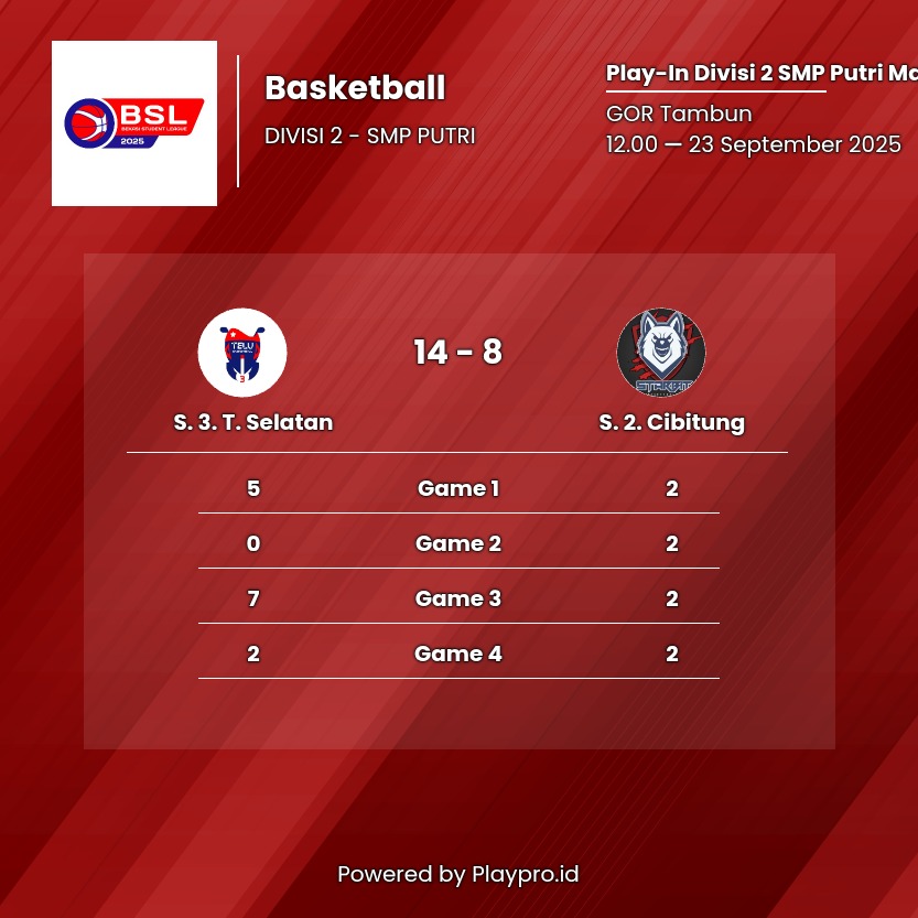Play-In Divisi 2 SMP Putri Match 156Basketball